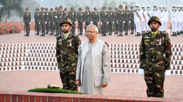 After paying the homage, the Chief Adviser exchanged greetings with the Chief Justice, advisers of the interim government, top civil and military officials, the injured valiant freedom fighters and family members of martyred intellectuals.